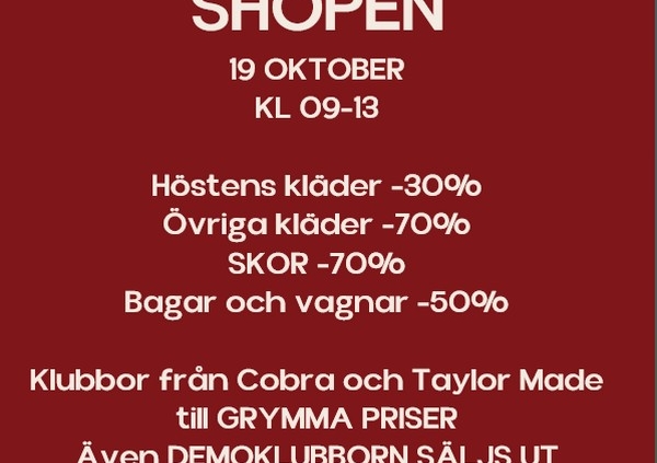 Här hittar du klubbor med kraftigt nedsatta priser, samt lite annat smått och gått. Demoklubbor till ännu bättre priser. Du kan givetvis komma och ställa frågor om vinterträning, lektioner, resor och nyheter.